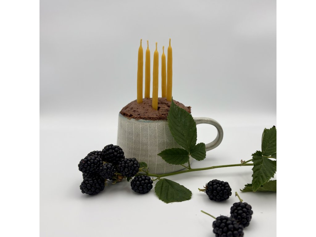 Ručně máčené dortové svíčky, které dodají každé oslavě jedinečný a elegantní nádech. Jsou vyrobené z čistého 100% včelího vosku, takže při hoření jemně voní medem a neobsahují žádnou chemii ani barviva.