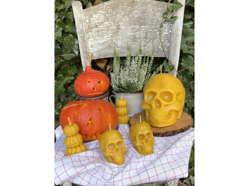 Originální svíčka ve tvaru lebky odlitá ze 100% čistého českého včelího vosku.