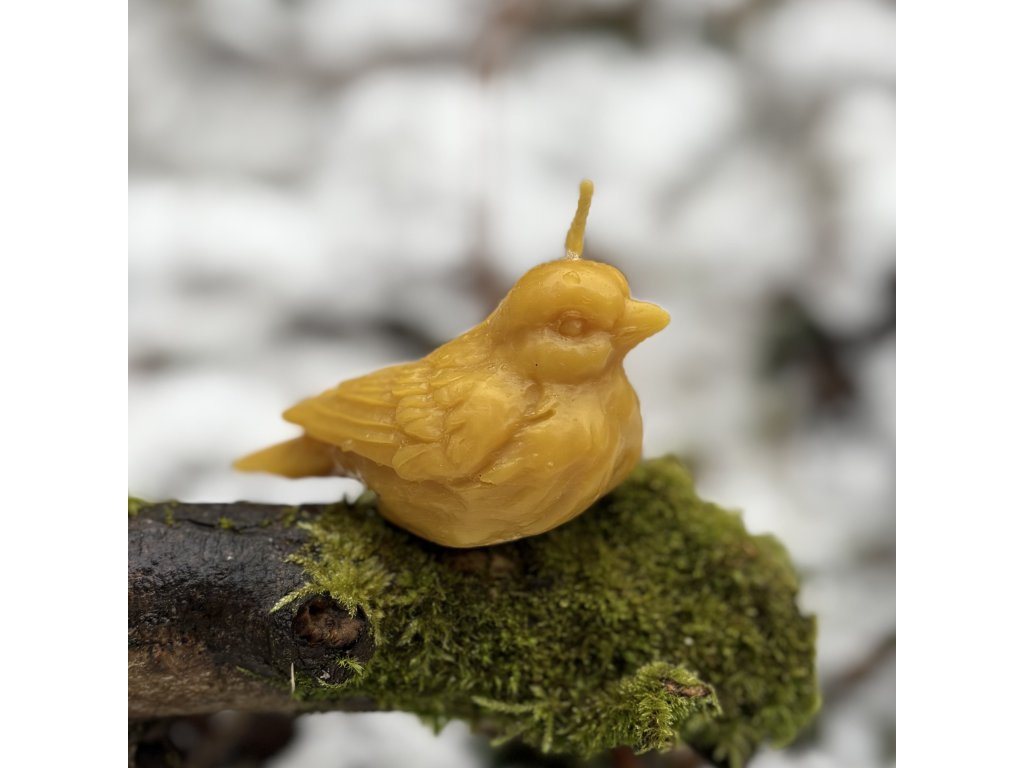 Malá ručně litá svíčka z čistého včelího vosku ve tvaru ptáčka. Propracovaný tvar a jemné detaily z ní dělají malý objekt, který potěší oko i atmosféru domova.